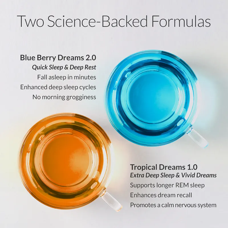 Blue Berry Dreams includes GABA and is designed as a foundational entry point for those new to sleep supplements. Tropical Dreams removes GABA entirely and contains 250% more Magnolia Bark Extract, making it a stronger botanical option suited to those who prefer GABA-free formulas or who want more Magnolia Bark in their formula.