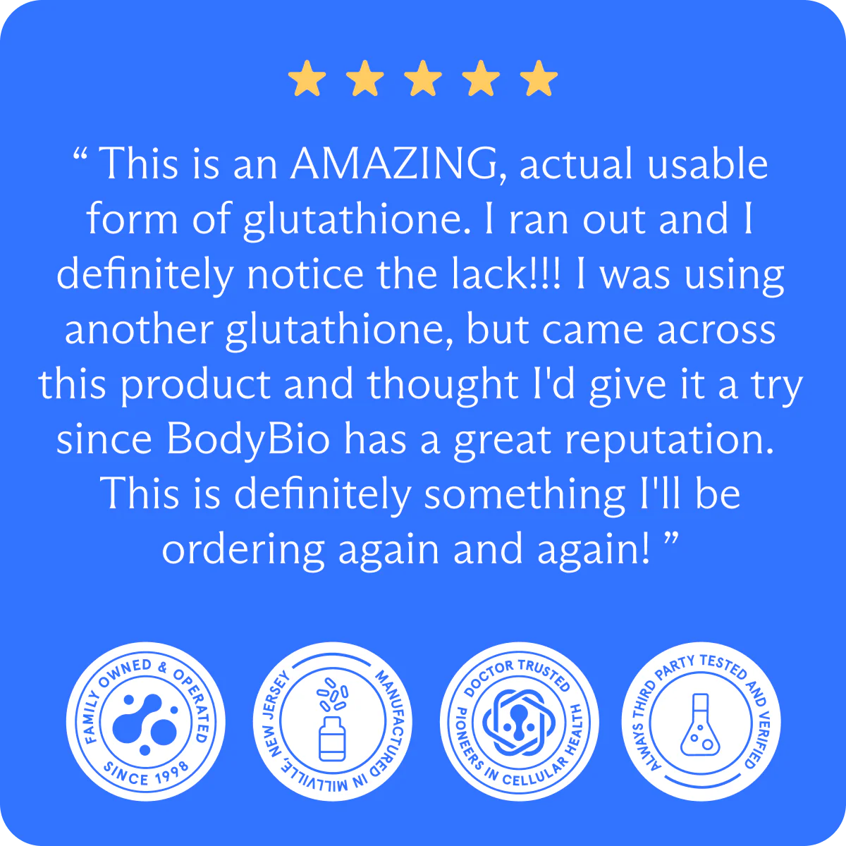 BodyBio uses a powdered liposome that forms a liposomal suspension upon digestion. This achieves the delivery benefits of liposomal technology in a shelf-stable capsule format, without the mess or inconvenience of liquid products. It’s also easier to travel with and has no strong taste.
