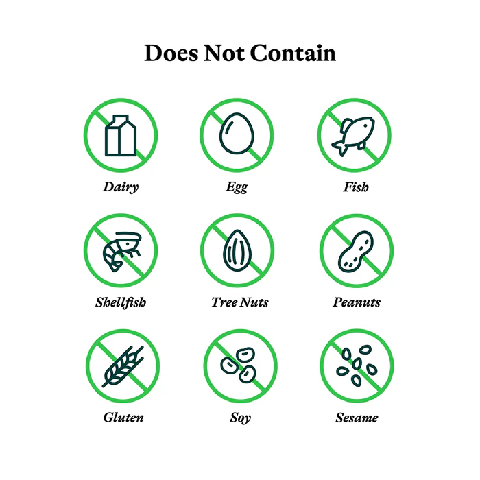 Allergen information: Free from common allergens. Gluten-free, GMO-free, and hypoallergenic formulation.