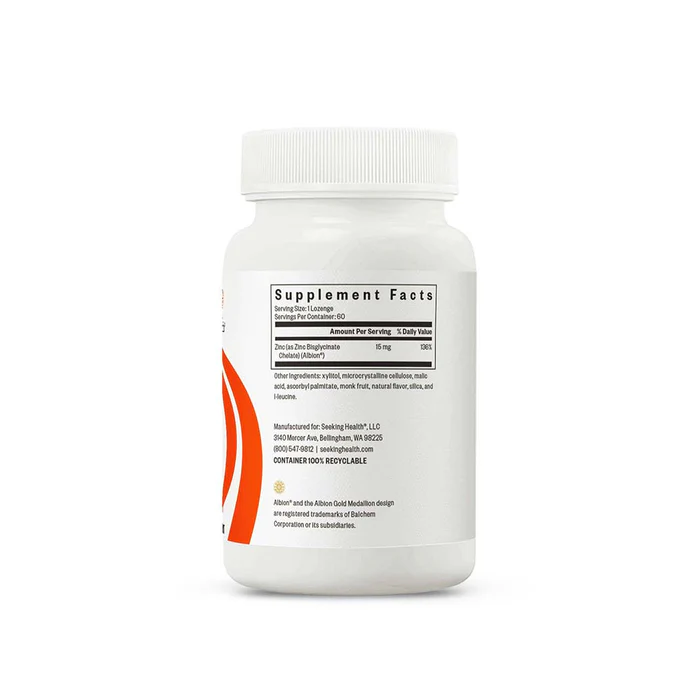 Seeking Health Zinc Lozenges provide a bioavailable zinc supplement in an easy-to-use chewable form, delivering 15mg of elemental zinc per lozenge. These lozenges are formulated for individuals seeking targeted nutritional support for immune function, skin health, and normal digestive tract integrity. The lozenge format allows for direct oral absorption and makes supplementation convenient and palatable, particularly for those who prefer not to swallow capsules.