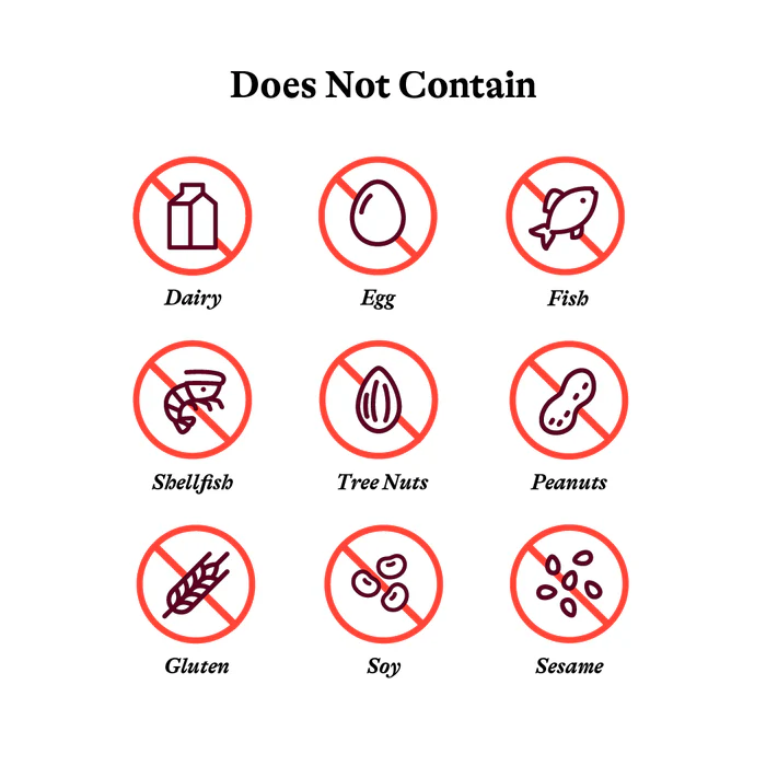 Free from artificial sweeteners, preservatives, colours, gluten, dairy, and soy.